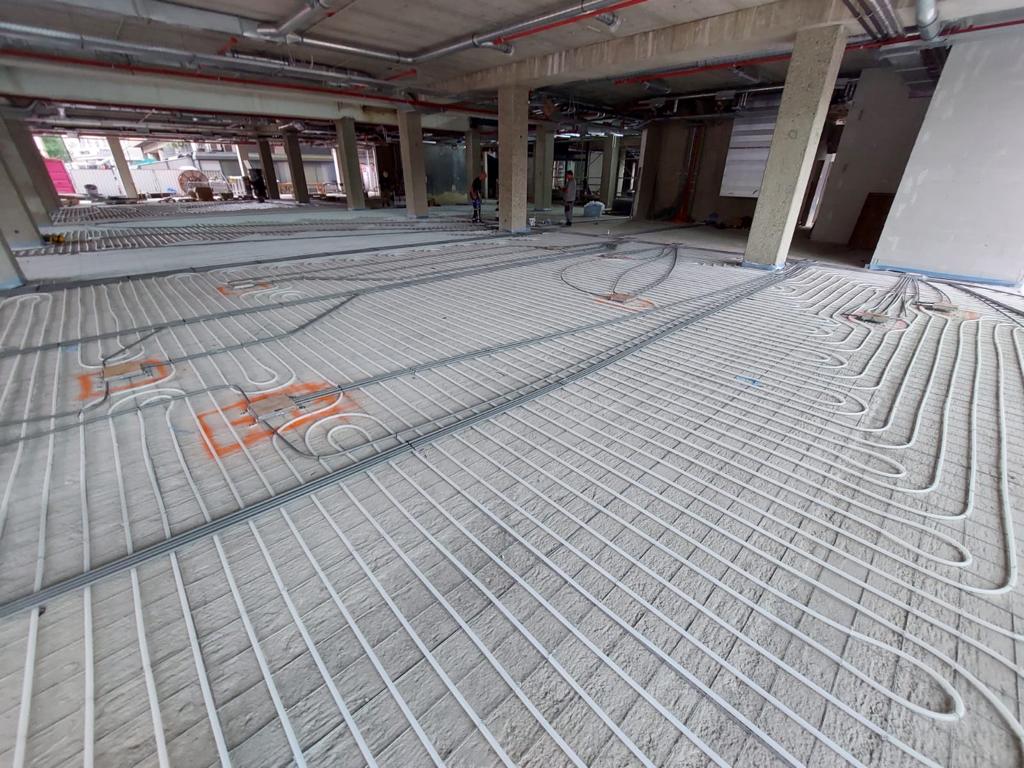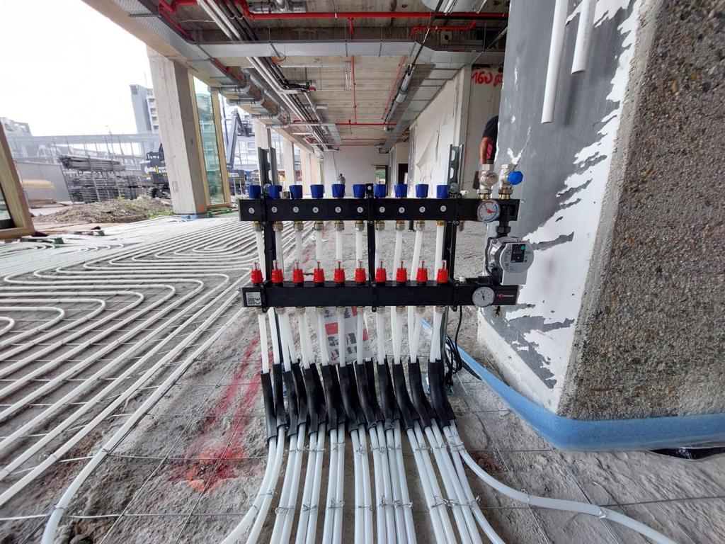 Het gaat om de complete vloerverwarming, inclusief matten, buis en verdelers, die door AVU geleverd en gemonteerd werd. De verdelers werden custom made gemaakt, omdat de voelers in de verdeelblok-